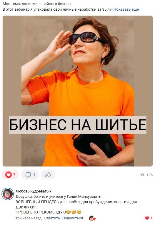 Моя методика подготовки предпринимателей основана на собственном 35-летнем опыте работы в швейной сфере.